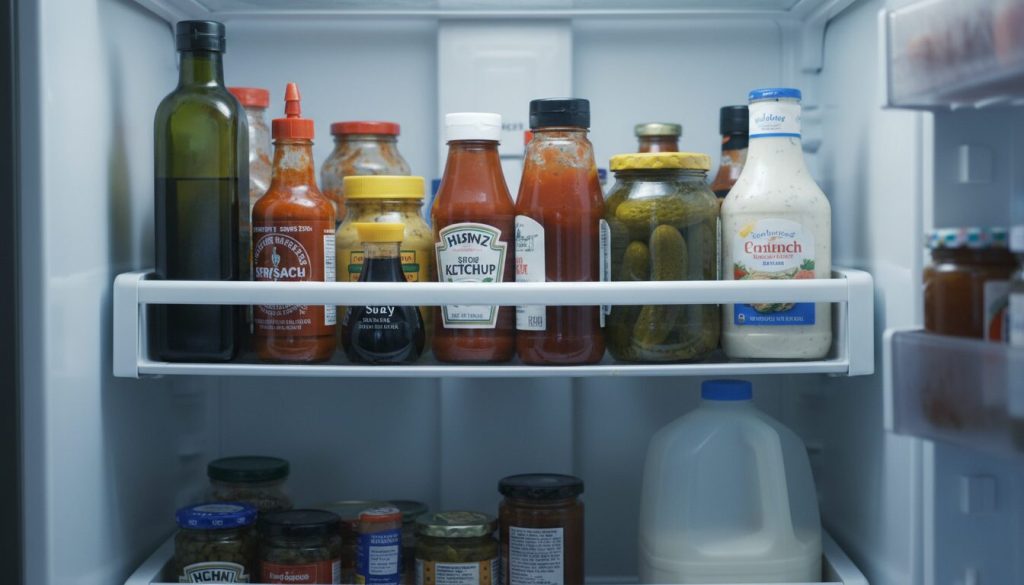 常温保存の調味料は、決まった置き場所にまとめておくと手に取りやすく、キッチンも整頓しやすくなります。冷蔵庫の中にも、調味料ゾーンを作っておけば、どの調味料がどれくらい減っているのか一目でわかります。
