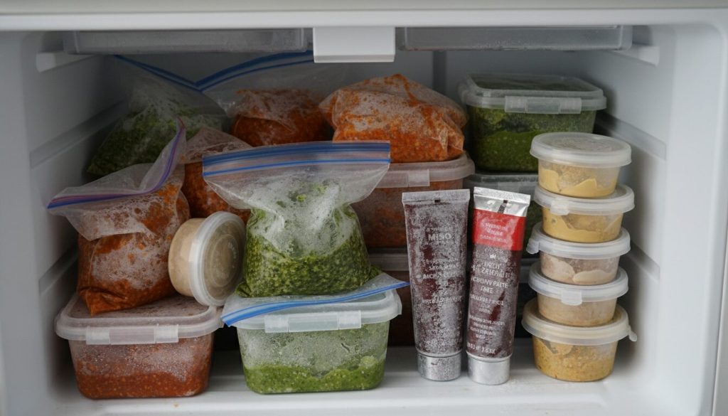 柚子胡椒、コチュジャン、豆板醤など塩分を多く含むものは冷凍保存が可能です。
